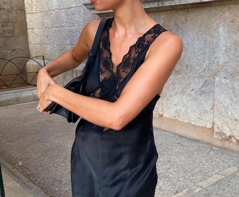 For daytime, think of a slip dress as your canvas. Toss on a chunky knit sweater over it for a cozy layered look, or add structure with an oversized blazer and tall boots. Leather jackets, denim, and even longline coats pair beautifully with the soft drape of a slip, creating that juxtaposition of tough and delicate that always feels modern. A satin slip top also works overtime—tucked into tailored trousers or layered beneath a cardigan, it’s equal parts polished and relaxed.