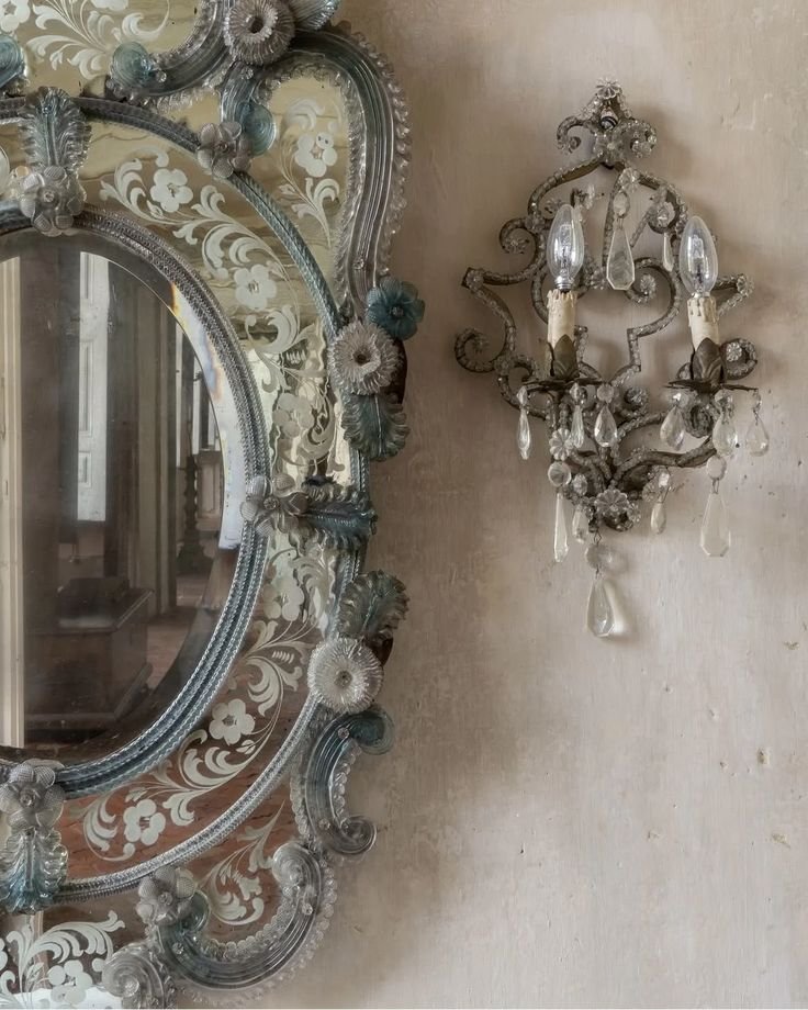 Silver is making its comeback—think polished nickel hardware, mercury glass, silver-leaf mirrors, and vintage candelabras.