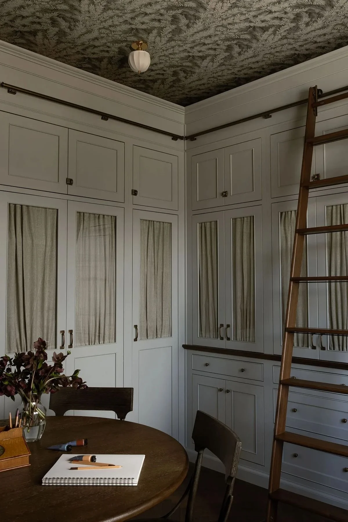 Designers are stepping away from bright whites and leaning into atmosphere. Deep olive, charcoal, aubergine, indigo, and muddy browns create rooms that feel cocoon-like and cinematic.