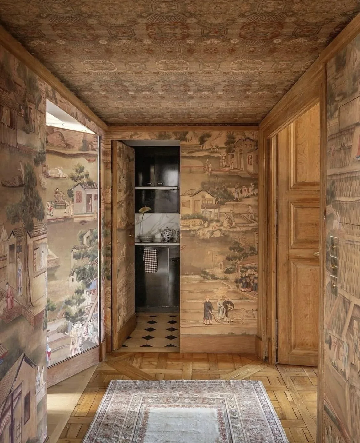 Think botanical wallpaper, skirted tables, pleated lampshades, and antique-inspired patterns. Heritage design feels storied but is being reimagined through a modern lens.